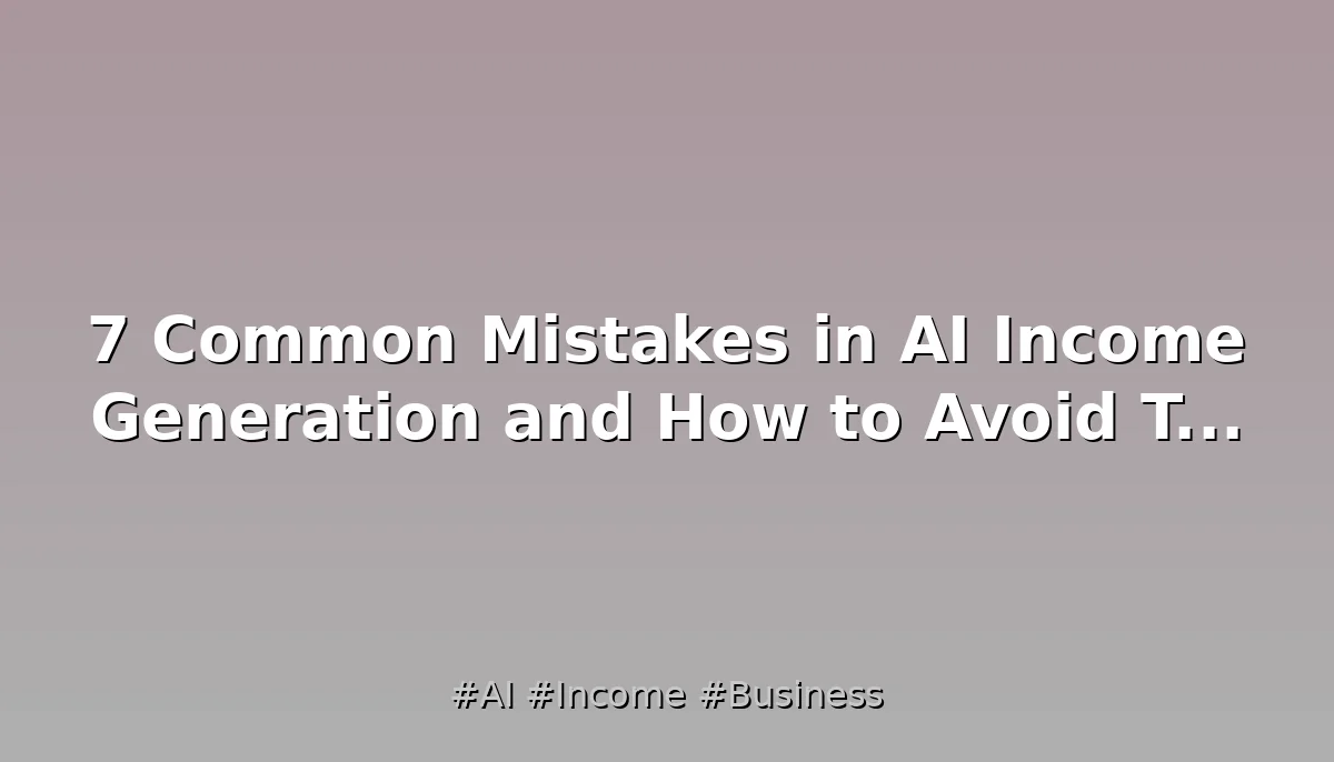 This expanded content delves deeper into the complexities of AI income generation, providing actionable advice, examples, and insights to guide you toward success. By addressing these common mistakes and adopting a strategic approach, you can significantly enhance your potential in the dynamic field of AI.