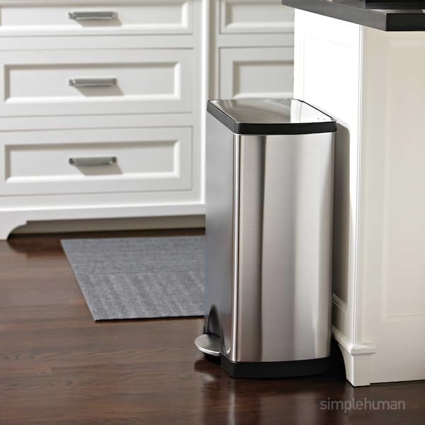 Découvrez la poubelle rectangulaire simplehuman en acier inoxydable brossé de 38 litres, équipée d'une pédale pratique pour une ouverture et une fermeture sans contact.