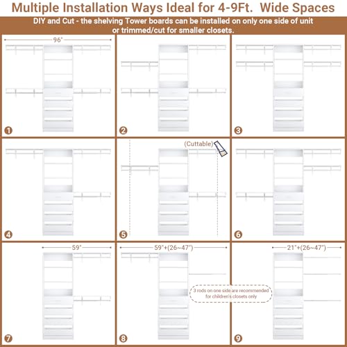 Our wide closet system is perfect for large closets, walk-in closets, or shared bedroom spaces. With its ample storage capacity and stylish design, you'll enjoy a clutter-free closet and a more streamlined morning routine.