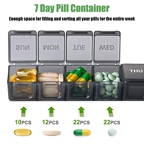 This 1 week pill organizer is ideal for anyone taking medication, vitamins, or supplements on a daily basis. The contoured bottom makes it easy to remove pills, and the compact design allows for easy storage in a purse, bag, or on a countertop.