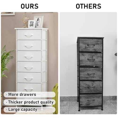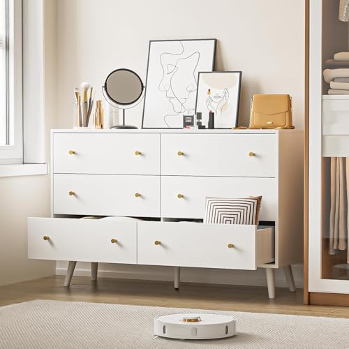 The white laminate finish provides a clean and elegant look that complements any bedroom decor. With six spacious drawers, you can keep your clothes, accessories, and personal items organized and within reach.