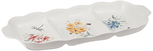 Elevate your dining experience with the beautiful Butterfly Meadow Divided Serving Dish. Crafted from durable, white ceramic porcelain, this 16" dish is perfect for serving a variety of dishes at your next gathering.
