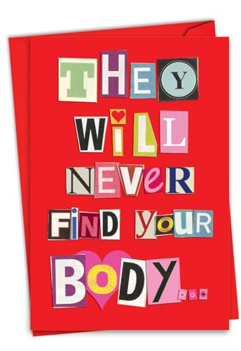 Make this Valentine's Day one to remember with the 'Never Find Your Body' greeting card by NobleWorks. The cover reads: They Will Never Find Your Body... and the inside says: ...As Hot As I Do! Be My Valentine Or Else!