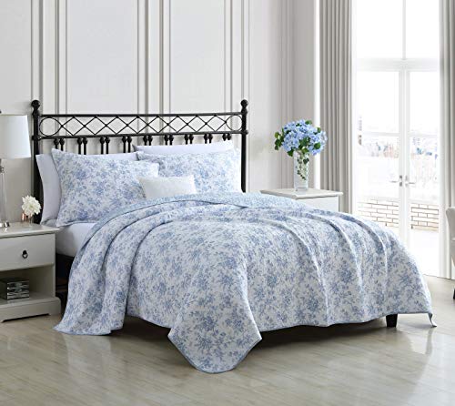 Elevate your bedroom with the charming Bedford Blue Quilt Set, featuring a reversible design for twice the style. This Laura Ashley cotton quilt set includes a twin quilt and two standard shams, perfect for a cozy retreat.