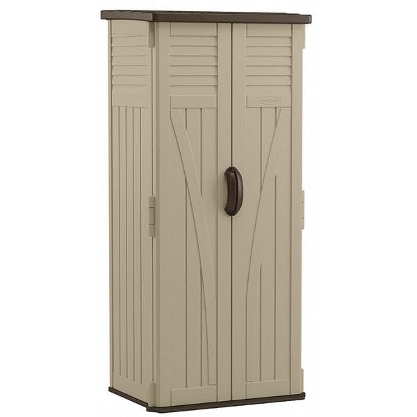 Maximize your outdoor organization in even the most compact spaces with the Suncast BMS1250 Blow Molded Vertical Storage Shed. Designed specifically for patios, porches, and balconies, this versatile 32"W x 24.75"D x 72"H shed offers robust storage without sacrificing valuable square footage.