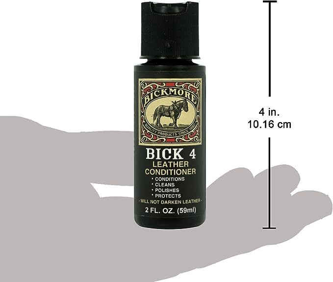 Keep your leather goods looking their best with Bickmore 10FPR106 Bick 4 Leather Conditioner. This 2-ounce formula is specially designed to condition, clean, polish, and preserve all smooth finished leather.