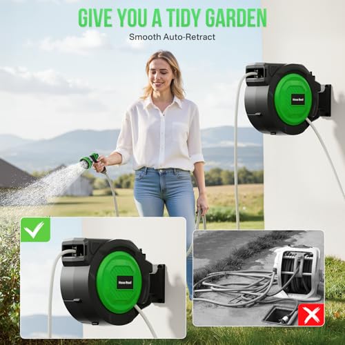 • Holds up to 100 feet of hose, keeping your outdoor space tidy and organized