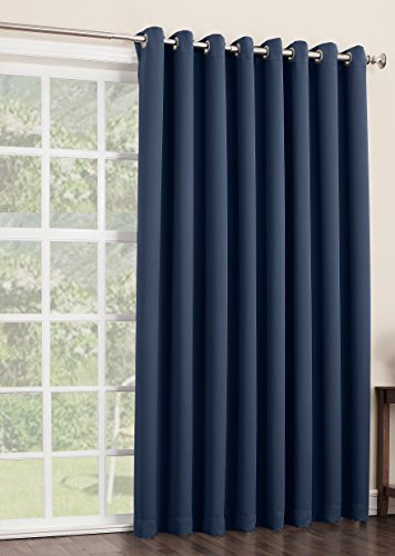 Elevate your home's style and functionality with the Sun Zero Easton Blackout Energy Efficient Curtain Panel. This navy blue, 100" x 84" patio panel is designed to provide optimal blackout functionality, energy efficiency, and a classic, timeless look.