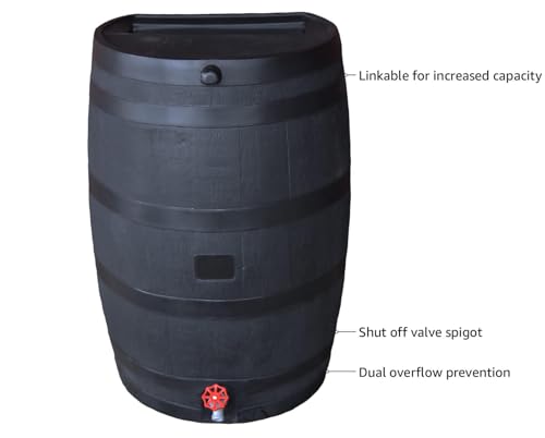 Collect and conserve rainwater with the Rain Catcher Rain Barrel RC4000, a 50-gallon brown water storage system. Made from durable materials, this rain barrel is perfect for watering plants, washing cars, and other outdoor uses.