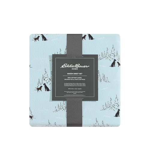 Bring a touch of cozy home decor to your bedroom with the Dog Friends Blue Full design, and enjoy a restful night's sleep with the Eddie Bauer Beacon Hill flannel sheet set.