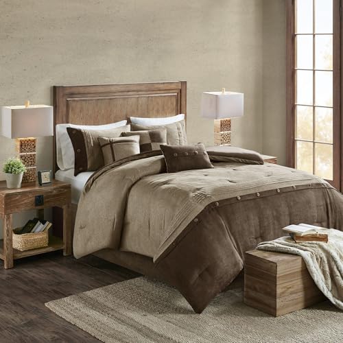 Elevate your bedroom with the Boone 7 Piece Comforter Set, designed to bring a warm lodge look to your space. This California King comforter set features a unique, textured earthy print made from polyester microfiber, ensuring durability and softness.