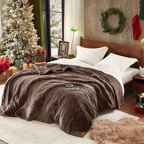 Stay warm and cozy with the Beautyrest BR54-0388 Heated Microlight to Berber Electric Blanket. This king-size blanket features two 20 heat level setting controllers, allowing you and your partner to customize your comfort level. The chocolate-colored blanket is made with a soft microlight to berber material that's gentle on skin.