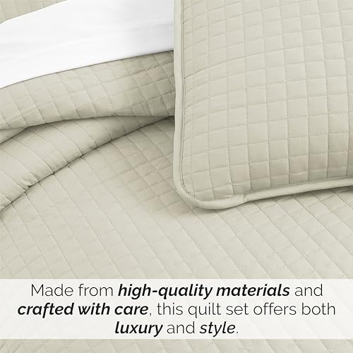 Elevate your bedroom with the Vilano Springs Quilt Set from Southshore Fine Living Inc. This luxurious quilt set features a soft microfiber coverlet, perfect for a Queen or Full size bed. The quilted cream comforter is designed to provide ultimate comfort and style.