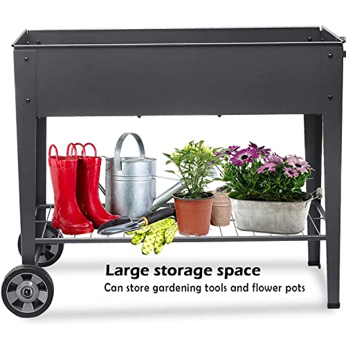 DIIYIV Galvanized Raised Garden Bed Outdoor with Legs 48×18×...