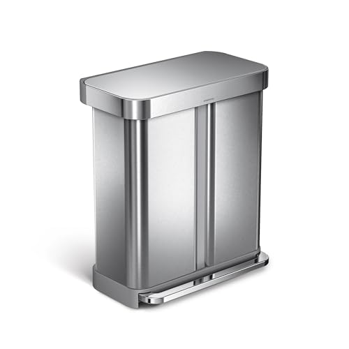 Experience the convenience of sorting trash and recyclables in one space-efficient can with simplehuman's 58L dual compartment rectangular step can. Made from durable stainless steel, this can features a liner pocket for easy cleaning and a step pedal for hands-free operation.