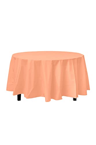 Elevate your events with our Exquisite 12-Pack Premium Plastic 84-Inch Round Tablecloth in Peach. Made of heavy-duty plastic material, these table covers are designed to provide a durable and waterproof layer for your tables.