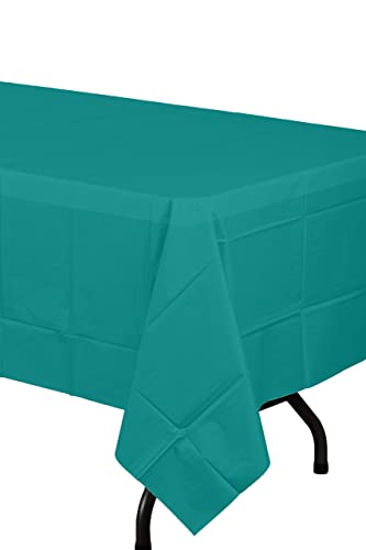 Our plastic tablecloths are designed to provide a stylish and protective cover for your tables. The teal color adds a pop of color to your event decor, while the heavy plastic material ensures they can withstand heavy use. With our tablecloths, you can focus on enjoying your event, not worrying about messy cleanups.