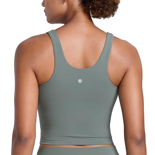 CRZ YOGA Womens Seamless Ribbed Longline High Neck Sports Bra - Racerback Padded Slim Fit Crop Tank Top with Built in Bra French Navy Large Price in USA