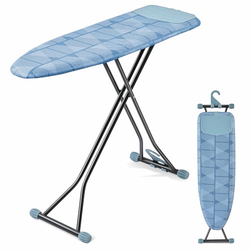 Experience the ultimate in ironing convenience with the Bartnelli Pro Luxury Ironing Board. This extra-wide ironing board measures 51x19 inches, providing ample space to iron large garments and fabrics. The adjustable height T-Leg design ensures stability and comfort, while the foldable feature allows for easy storage.