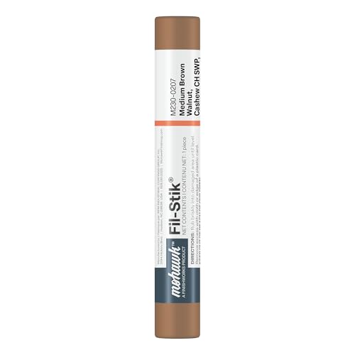 Fix scratches and nicks on wooden surfaces with the Mohawk Fill Stick (Fil-Stik) in Medium Brown Walnut. This semi-soft wax filler stick is perfect for repairing abrasions on a wide range of surfaces, including furniture, floors, and trim.