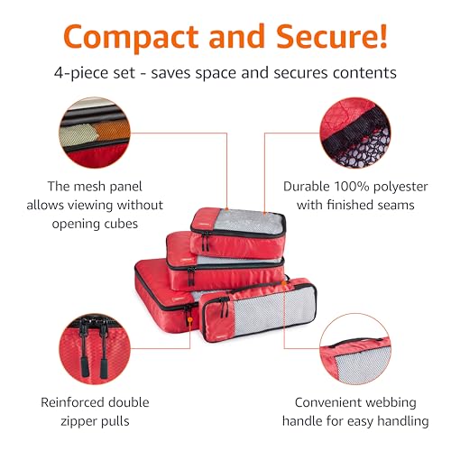 Organize your travel essentials effortlessly with the Amazon Basics Lightweight Packing Cubes 4-Piece Set. Designed for convenience, durability, and style, these packing cubes help maximize luggage space and keep your belongings neatly arranged throughout your journey.