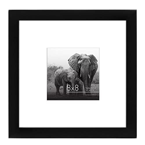 Elevate your home decor with the Americanflat 8x8 picture frame in black, perfect for showcasing cherished memories and favorite photos. This versatile frame can display 4x4 photos with a mat and 8x8 photos without a mat, offering flexibility in your decoration choices.