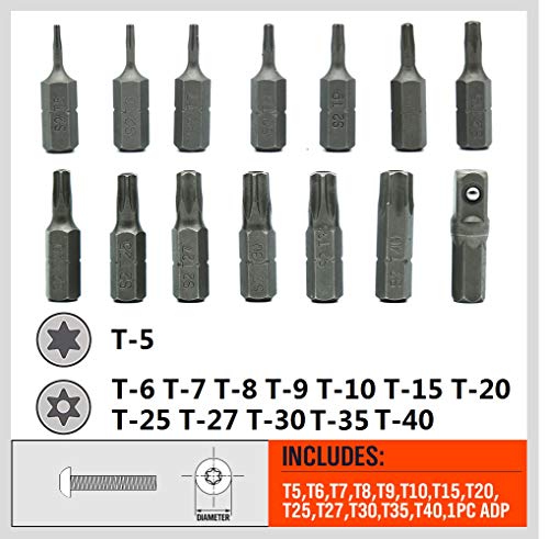 14ピース 不正開封防止スタービット S2合金スチール T5 - T40 セキュリティトルクスビットセット (14ピース...