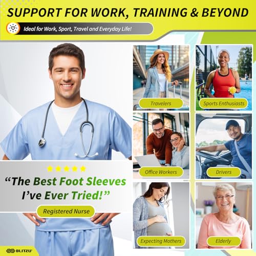 Advantages and benefits of wearing BLITZU Compression Calf Sleeves: Hikers Walkers ramblers runners and joggers - Spend your whole day walking and running without muscle strains cramps and fatigues. Outdoor enthusiasts and Athletes - Less muscle strain means you can train harder feel stronger and perform better in the gym and on the field. Jobs that involve lots of standing - Bring more energy into your legs! No more foot pain from standing all day long at work! Air Travelers - Our Sleeves help reduce pain by improving blood flow in the legs. People with leg problems - Prevent and reduce symptoms of Shin Splints Calf Cramps and Pulled Muscles. Features: AVOID INJURY : Improve blood circulation. Prevent unnecessary injury and pain by offering optimal muscle support during everyday activities. SPEED UP RECOVERY : The compression helps relieve muscle pain as well as aids in muscle recovery & rehabili