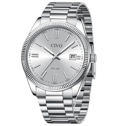 CIVO Analog Mens Watches Silver: Wrist Watches with Date Eas...