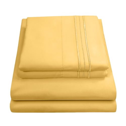 Specifications & Details: This king size sheets set is designed to fit king size mattresses, with a flat sheet and fitted sheet that will provide a comfortable and snug fit. The set includes 2 pillow cases to complete the look. Made from double brushed microfiber, this sheet set is not only soft but also durable and easy to care for.