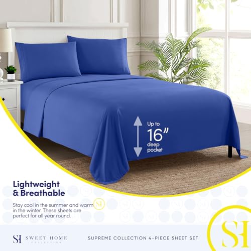 Specifications & Details: The Sweet Home Collection 1800 Thread Count Sheet Set is made from high-quality brushed microfiber, ensuring a soft and comfortable sleeping experience. The set includes a flat sheet, fitted sheet, and 2 pillow cases, making it a complete luxury bedding solution. The product is available in Royal Blue color and Full size, with a base price of $26.62. The dimensions of the sheets are not specified, but the set is designed to fit standard mattress sizes.