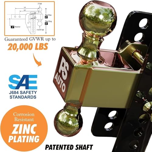 B&W 10 000 Bumper Pull Adjustable Height & Ball - 2.5\" Receiver Hitch Ball Mount Assembly with 2\" and 2-5/16\" Chrome Hitch Balls Price in USA