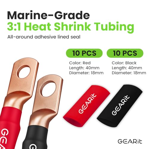 GearIT 4 Gauge Wire 10 Lugs 20 Heat Shrink Wrap for Automoti...