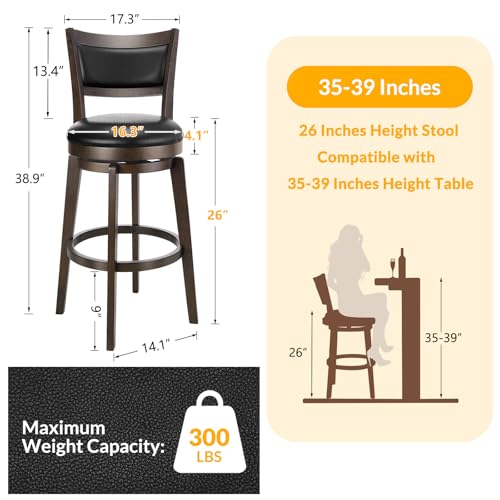 Yaheetech Bar Stools Adjustable Counter Stools Bar Chairs Synthetic Leather Modern Design Swivel Barstools Gas Lift Stools for Kitchen Counter 360 Degree Swivel Seat Top Set of 2 Black