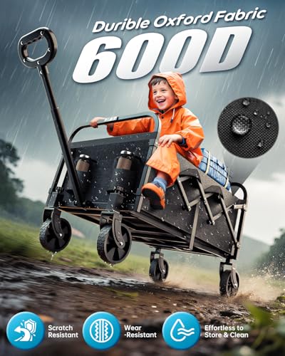BEUSZATED Collapsible Wagon 380 lbs Heavy Duty Wagons Carts ...