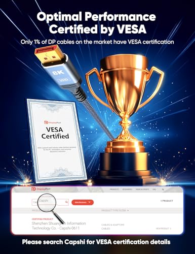 Capshi 8K DisplayPort Cable 1.4 VESA Certified 8K 4K DP Cabl...