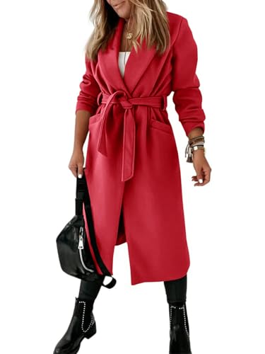 Women's Classic Coat Lapel Collar Open Front Belted Long Jac...