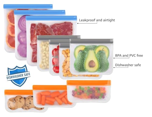 Lerine 10 Pack Dishwasher Safe Reusable Bags Silicone Leakpr...