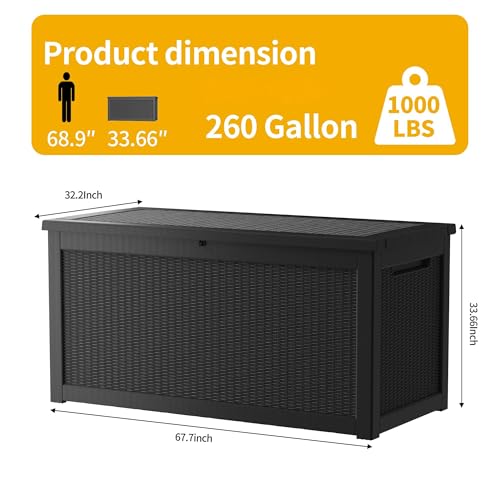 Decksplore 260 Gallon Lockable Resin Deck Box Waterproof Out...