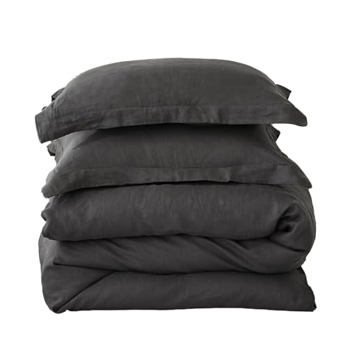 Specifications & Details: This duvet cover set is made from 100% linen, with a GSM of 160 ± 5%, ensuring it is both soft and durable. The set includes a duvet cover and two pillowcases, all made from the same high-quality linen material. The dark grey color is both stylish and versatile, able to complement a variety of bedroom styles. The king size duvet cover set is designed to fit standard king-sized beds, providing a comfortable and cozy sleeping environment.