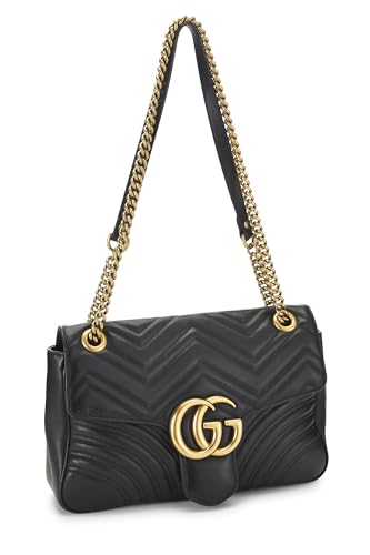 Gucci Pre-Loved Black Leather GG Marmont Shoulder Bag Black