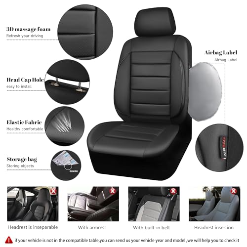 CAR PASS Leather Seat Covers Full Set Universal Water Resist...