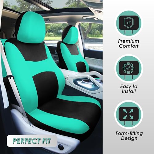 FH Group Car Seat Covers Full Set Cloth - Universal Fit Automotive Seat Covers Low Back Front Seat Covers Airbag Compatible Split Bench Rear Seat Washable Car Seat Cover for SUV Sedan Van Mint
