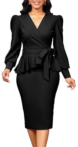 Elegant Black Vintage Dresses for Women Sexy Wrap V Neck Ruc...