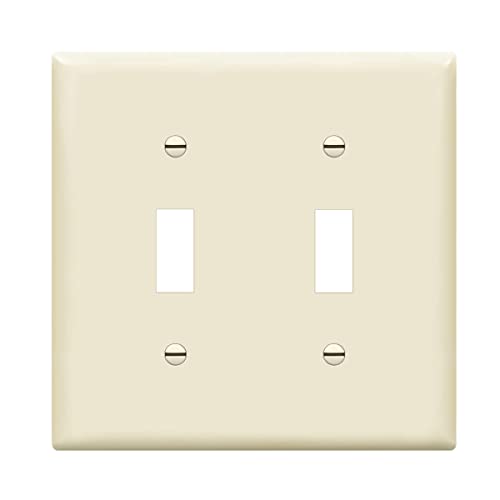 ENERLITES Toggle Switch Wall Plates ENERLITES unbreakable polycarbonate thermoplastic wall plates are manufactured to provide durability flexibility and resilience to bending and high impacts. They are also heat & fade resistant to temperatures over 100 degrees which protects them from fading and discoloration over time. Their smooth finish provides an attractive look and makes them easy to clean. Specifications Rating : Flammability UL94 V2 Rating Material : Polycarbonate Thermoplastic Color : Light Almond Dimensions : 4.50” x 4.57” Requirements: 2-Gang box Certifications : UL Listed Package Includes 1 x Wall Plate Screws Installation Instructions