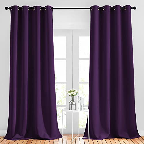 NICETOWN Insulated Curtains Blackout Draperies - Window Treatment Royal Purple Blackout Eyelet Top Curtains/Panels for Bedroom/Living Room Window 95 inches Long 2 Panel Set