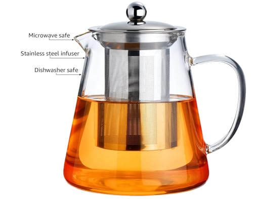 Glass Teapot with Removable Infuser 1000ml Stovetop Tea Make...