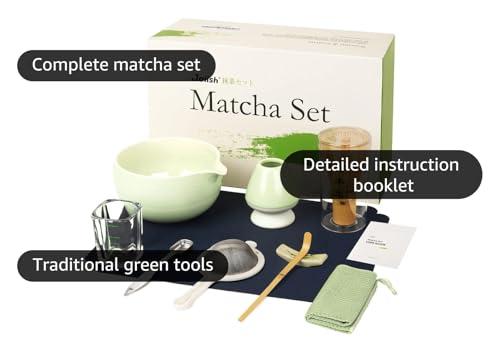 Prepare a perfect cup of ceremonial matcha! Comes with a full color step by step guide to preparation Makes a wonderful gift for those discovering matcha Set Includes: Bamboo Whisk (Chasen) Bamboo Scoop (Chashaku) Stainless Steel Sifter Full Color Matcha Handbook All you need is some matcha a small bowl and some hot water and you're ready to go!