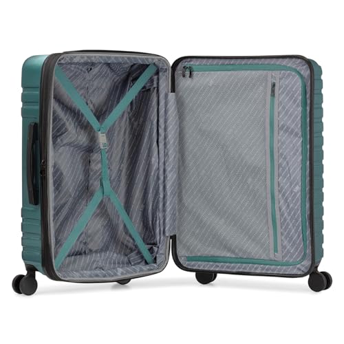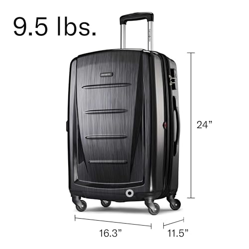 100% Polycarbonate Micro-diamond texture is extremely scratch-resistant keeping cases beautiful trip after trip. Re-engineered lightweight Spinner Wheels for effortless mobility. Consumer-preferred expansion on all sizes. Full-zip interior divider and cross-straps for increased packing organization. Side-mounted TSA lock ensures security while traveling. Carry- On size and weight allowances vary by airlines. Weight: 6.8 lbs.Body Dimensions: 19.0\" x 14.5\" x 9.5\"Overall Dimensions: 22.0\" x 15.0\" x 9.5\"