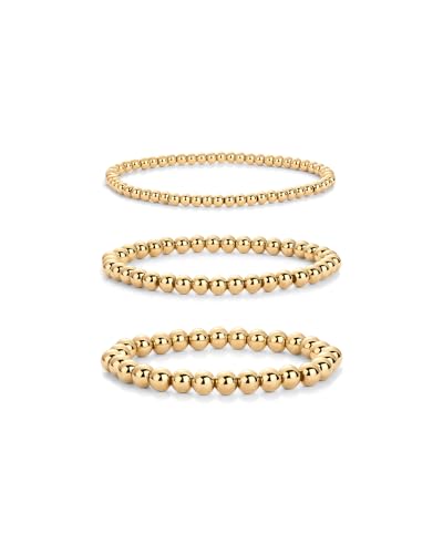 PAVOI 14K Yellow Gold Plated Beaded Bracelet Trio for Women ...